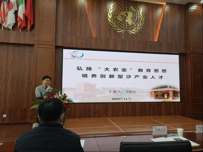 在高校分论坛,公司副经理马银山作了题为《弘扬“大农业”教育思想,培养创新型沙产业人才》的报告,报告详细介绍了yl1111永利集团钱学森沙产业奖学金班的基本情况以及在人才培养模式、探索教学理念、弘扬钱老精神等方面的创新之举进行了交流发言。