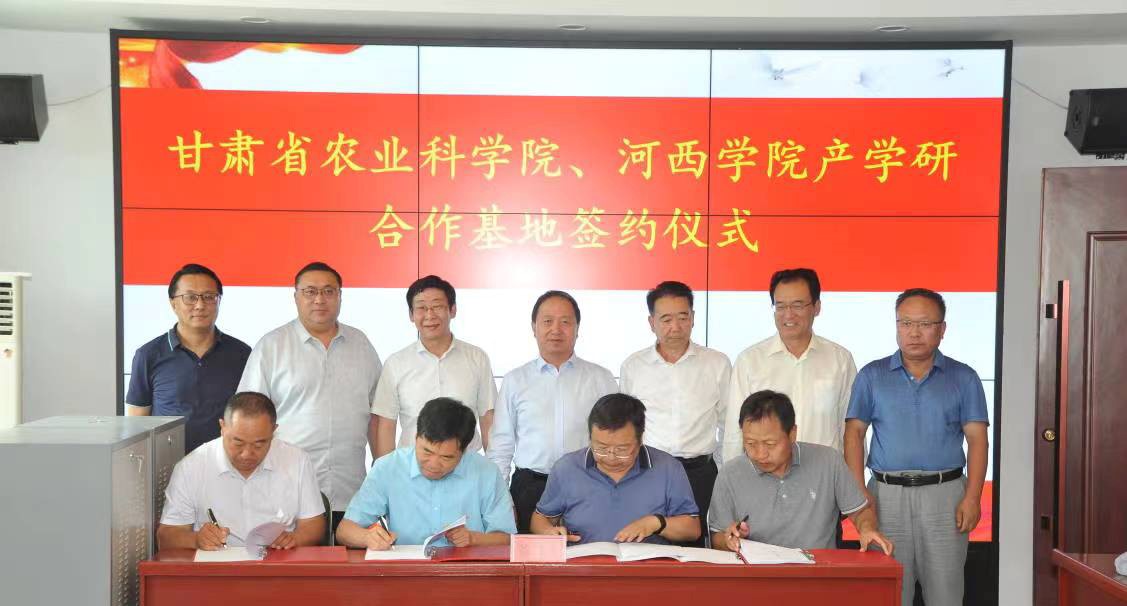 签约仪式上,yl1111永利集团与省农科院土肥所、作物所、张掖试验站共同签订产学研合作协议;张汉燚、魏胜文为基地揭牌。