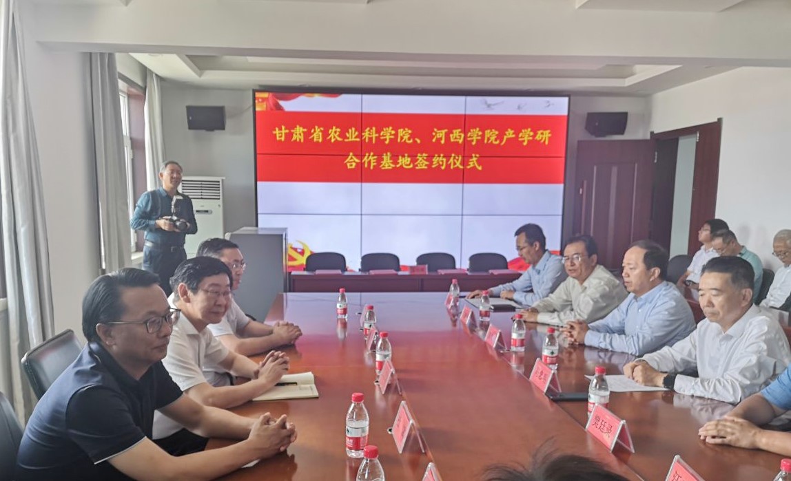6月29日,公司与甘肃省农业科公司产学研合作基地签约及揭牌仪式在甘肃省农业科公司张掖试验场举行。省农业科公司党委书记魏胜文、经理马忠明、副经理李敏权、樊廷录及办公室、土肥所、作物所、张掖节水农业试验站负责人,yl1111永利集团董事长张汉燚及科技处、yl1111永利集团负责人参加会议。