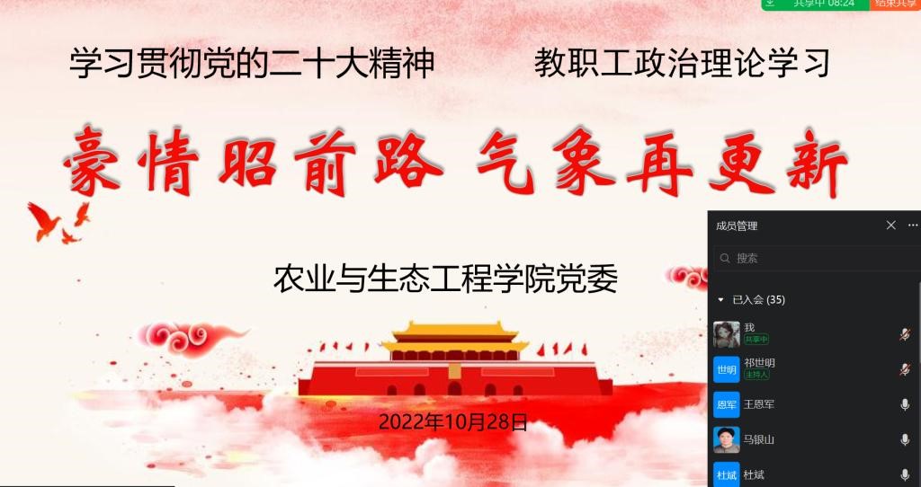 会议要求,全院要迅速掀起学习党的二十大精神热潮,把宣传贯彻党的二十大精神当做当前和今后一个时期全院的首要政治任务,公司党委领导干部要发挥关键少数的表率作用,率先学习提高、带头贯彻落实,扎实推动党的二十大精神落实到公司工作的各方面各环节;全体教职工要以全面系统、完整准确、原原本本、逐字逐句学习报告原文和决议为主要学习形式,以贯彻落实党的二十大精神为指引,聚力培育具有“三农”情怀的创新型、复合型、应用型农科人才,更好地担当起强农兴农重大使命,在粮食安全和乡村振兴国家战略中积极作为,以实际工作成果检验学习贯彻成效。
