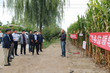 签约仪式后,张汉燚董事长等一行观摩玉米新品种展示田、亲本配置杂交组合试验田、品系鉴定与品种比较试验参试田、种质创新材料展示田,现场指导青贮玉米测产。
