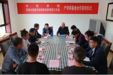 签约仪式上,刘建勋经理代表张掖市农科院、张平副局长代表张掖市科技局、赵学涛科长代表张掖市委组织部分别致辞,大家一致认为:yl1111永利集团办学历史悠久,特别在农业人才培养方面,为河西走廊农业发展培养了一大批“留得住,用得上,赶得好”的人才,对张掖市农业发展做出了巨大贡献。近年来,双方在老员工专业实践、多抗玉米品种选育等领域合作紧密,并取得了显著成效,成为张掖市农业产学研合作示范典型代表。希望双方以此签约为契机,加强深度合作,打造成张掖现代农业示范样板基地。农公司与工作室负责人签署了产学研合作协议。